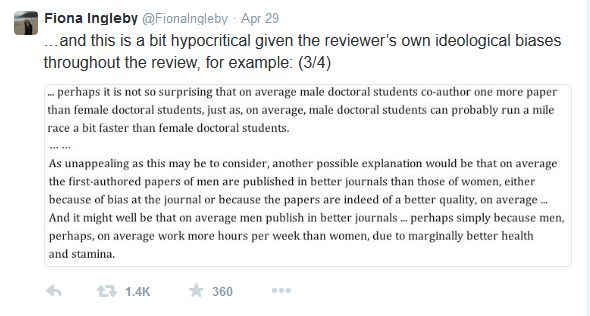 One of Fiona Ingleby’s Tweets that included excerpts from the anonymous peer review. (credit: @FionaIngleby/Twitter)