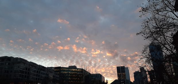 Winter sky, Robson Square, Vancouver, December 2023. (credit: own photo)